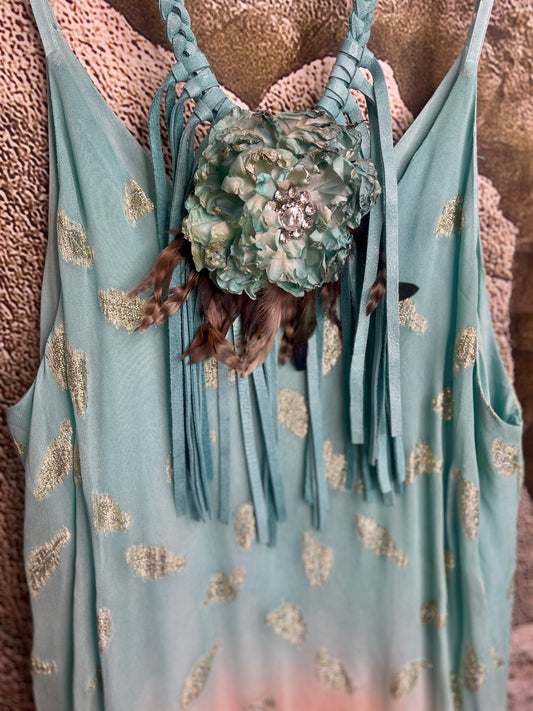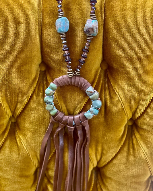 TURQUOISE ROUNDABOUT FRINGE NECKLACE