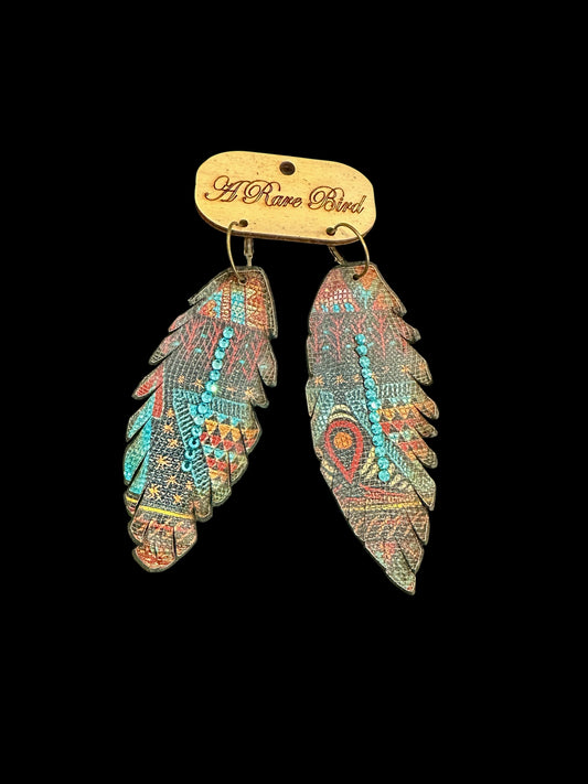 Aztec Leather Feather Earrings