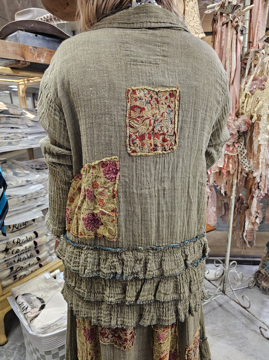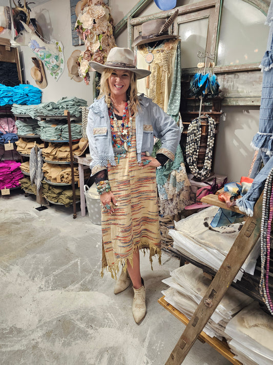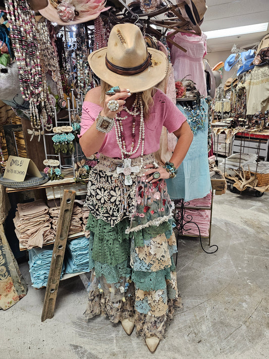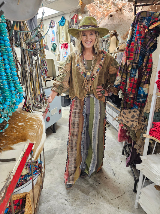 Stitched, jeweled, patched, and sewn by hand. Be the gorgeous person in the room wearing A Rare Bird!