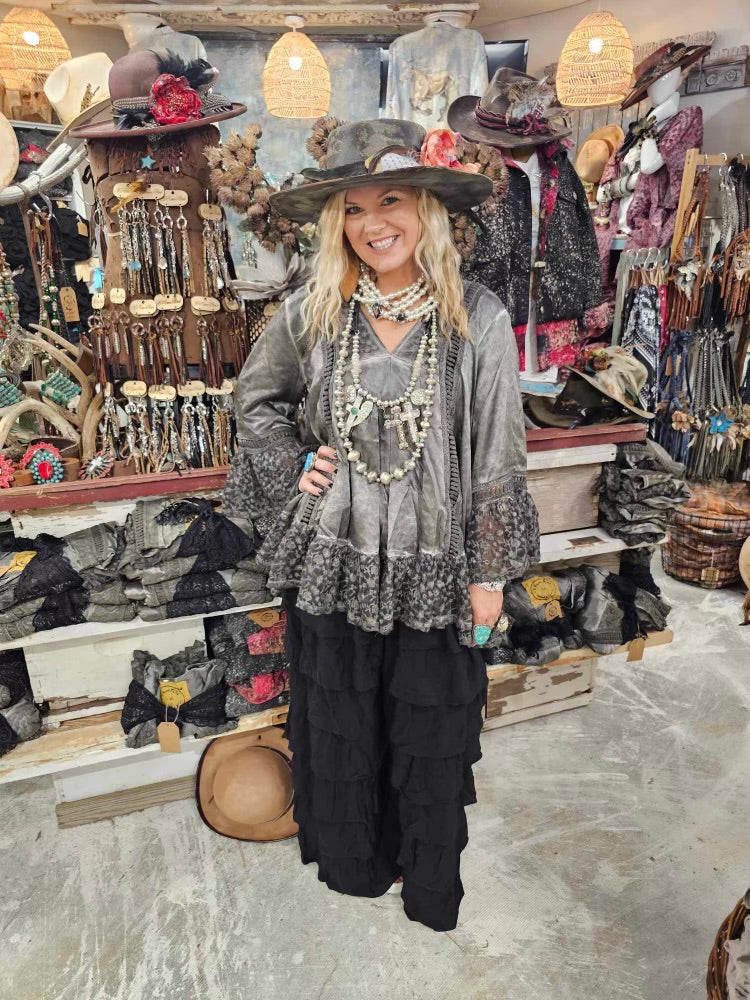 These Black Ruffle Pants combine pajama-like comfort with a stylish look. With an elastic waistband and stretchy fit, they keep you comfortable while flattering your shape. Perfect for everyday wear and sure to get compliments.