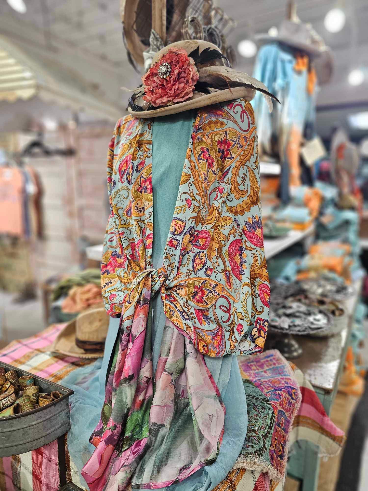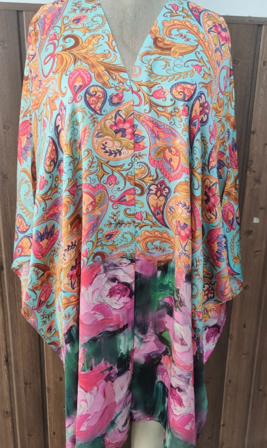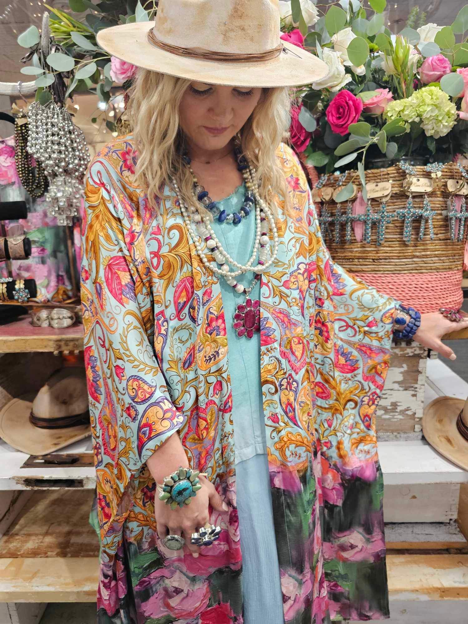 Paisley is having a party in this high low kimono! Paisley on the top and garden on the bottom....let's see how we can be gorgeous in this baby! Wrap it in the front, around or just hang down...pair back with jeans or velvet. Masterpiece!