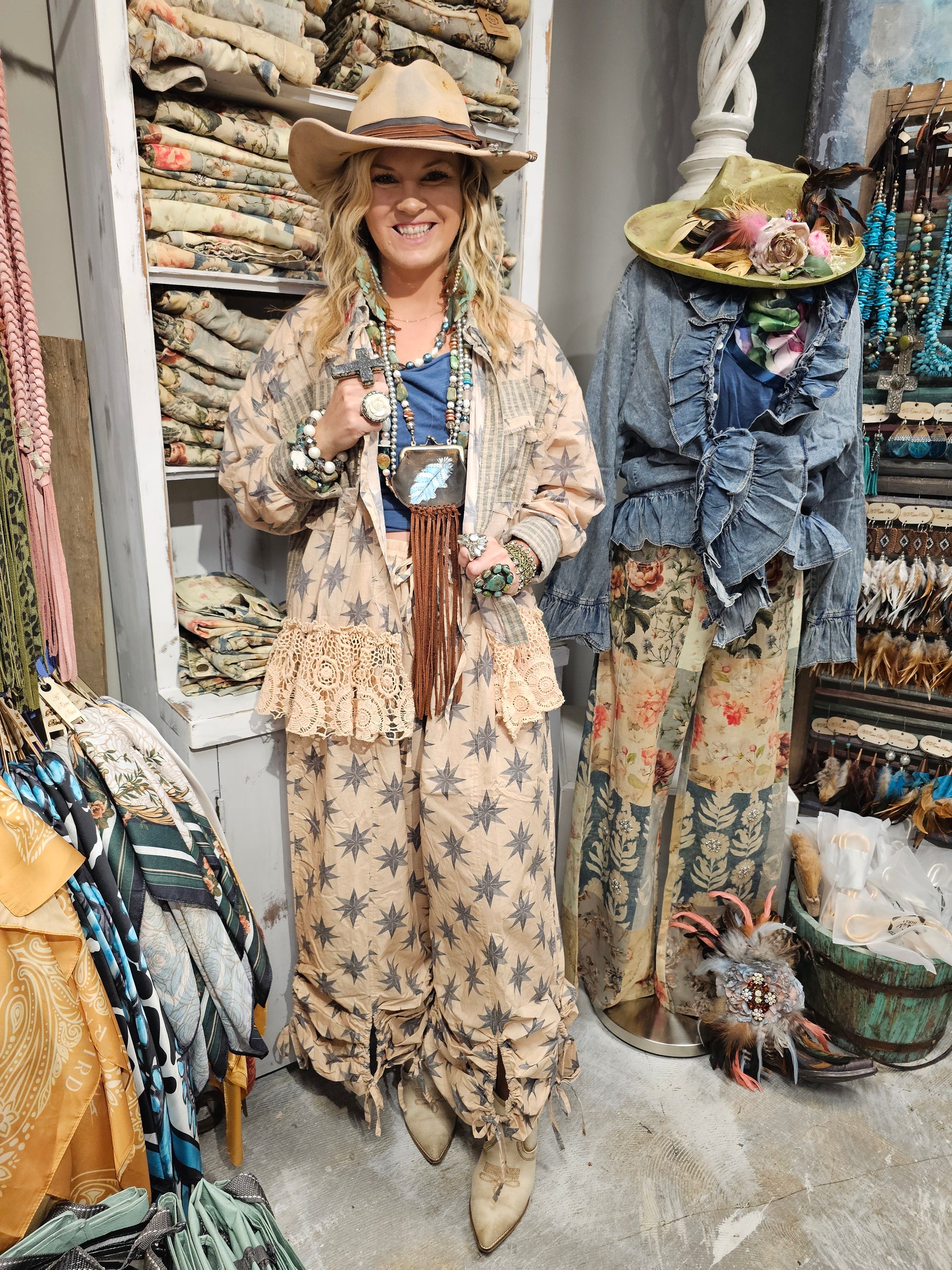 One size fits little to fluffy! These are very slimming and go with our ROSES ARE RED shirt.